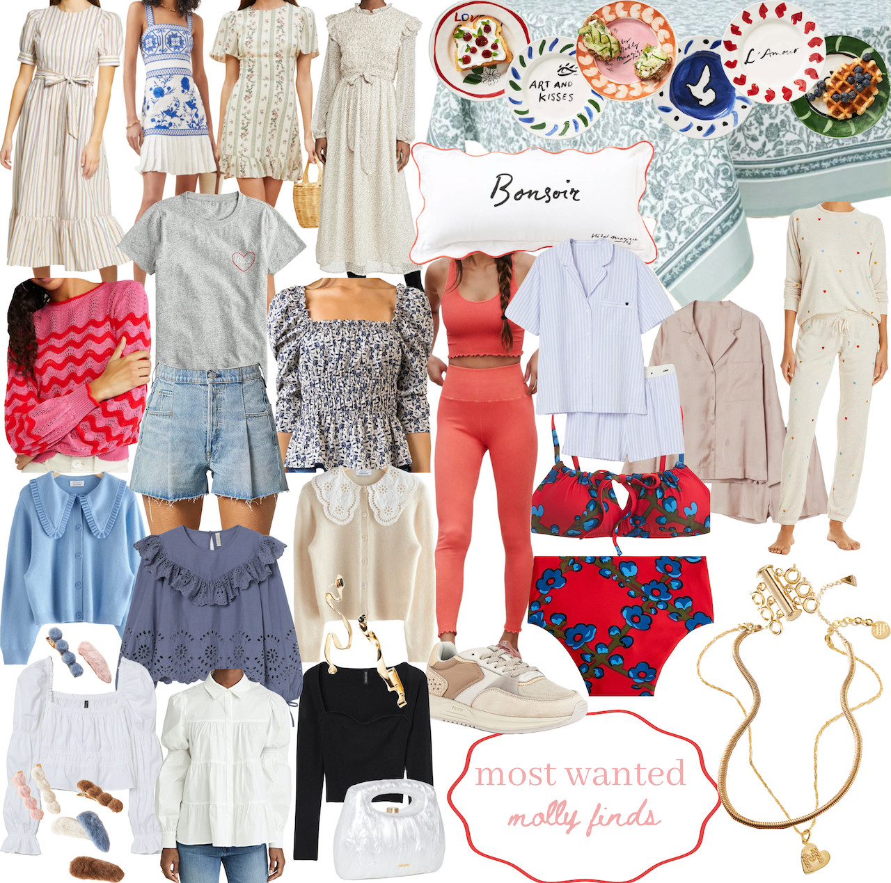 We’ve nearly made it through the first month of the year! I am so looking forward to February and all the fun heart-day decor and attire that comes with it. There’s the cutest pink and red sweater in this weeks finds that is perfect for the festivities! As well as so many more goodies – like the first bathing suit of the year, a darling ruffled hem matching yoga set, some fuzzy hair clips, a set of dishes to swoon over, and a nifty necklace separator! Hope yall enjoy!